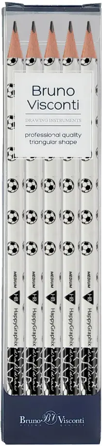 Набор из 5 чернографитных карандашей HappyGraphix. Футбольные мячи, НВ