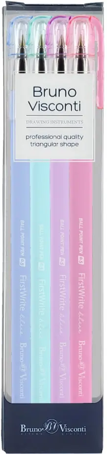 Набор из 4-х шариковых ручек «FirstWrite» от Bruno Visconti с высоким знаком качества для работы в офисе или учебе.