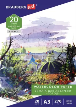 Бумага для акварели Brauberg Art "Classic" содержит набор листов, специально предназначенных для рисования всеми видами водорастворимых красок.