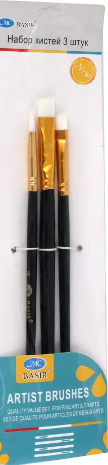 Набор кистей: состоит из 3 художественных кистей (круглые и плоские).