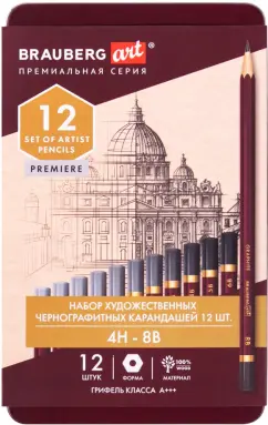 Карандаши чернографитные художественные Brauberg Art "Premiere" универсальны в рисовании и обладают огромными возможностями в передаче света и тени. Подходят для создания легкого наброска, быстрого рисунка или полноценной картины.