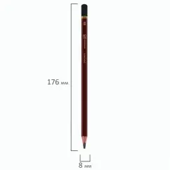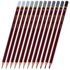 Карандаши легко затачиваются, максимально устойчивы к повреждениям. Изготовлены из дерева высокого качества. Имеют шестигранное сечение. Основной цвет корпуса - бордовый. Цвет кончика карандаша зависит от степени твёрдости - чем мягче, тем темнее. Набор состоит из карандашей различных степеней твердости: 4H - 1 штука (диаметр грифеля 2,0 мм), 3H - 1 штука (диаметр грифеля 2,0 мм), 2H - 1 штука (диаметр грифеля 2,4 мм), H - 1 штука (диаметр грифеля 2,4 мм), HB - 1 штука (диаметр грифеля 2,4 мм), B - 1 штука (диаметр грифеля 2,4 мм), 2B - 1 штука (диаметр грифеля 2,4 мм), 3B - 1 штука (диаметр грифеля 2,4 мм), 4B - 1 штука (диаметр грифеля 2,4 мм), 5B - 1 штука (диаметр грифеля 3,0 мм), 6B - 1 штука (диаметр грифеля 3,0 мм), 8B - 1 штука (диаметр грифеля 3,5 мм). Поставляются заточенными.