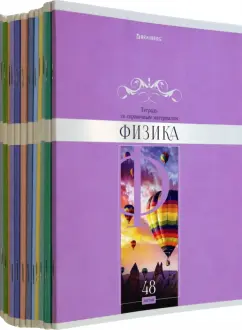 В комплекте 12 тетрадей: Алгебра, Английский язык, Биология, География, Геометрия, Обществознание, Информатика, История, Литература (в линию), Русский язык (в линию), Физика, Химия.