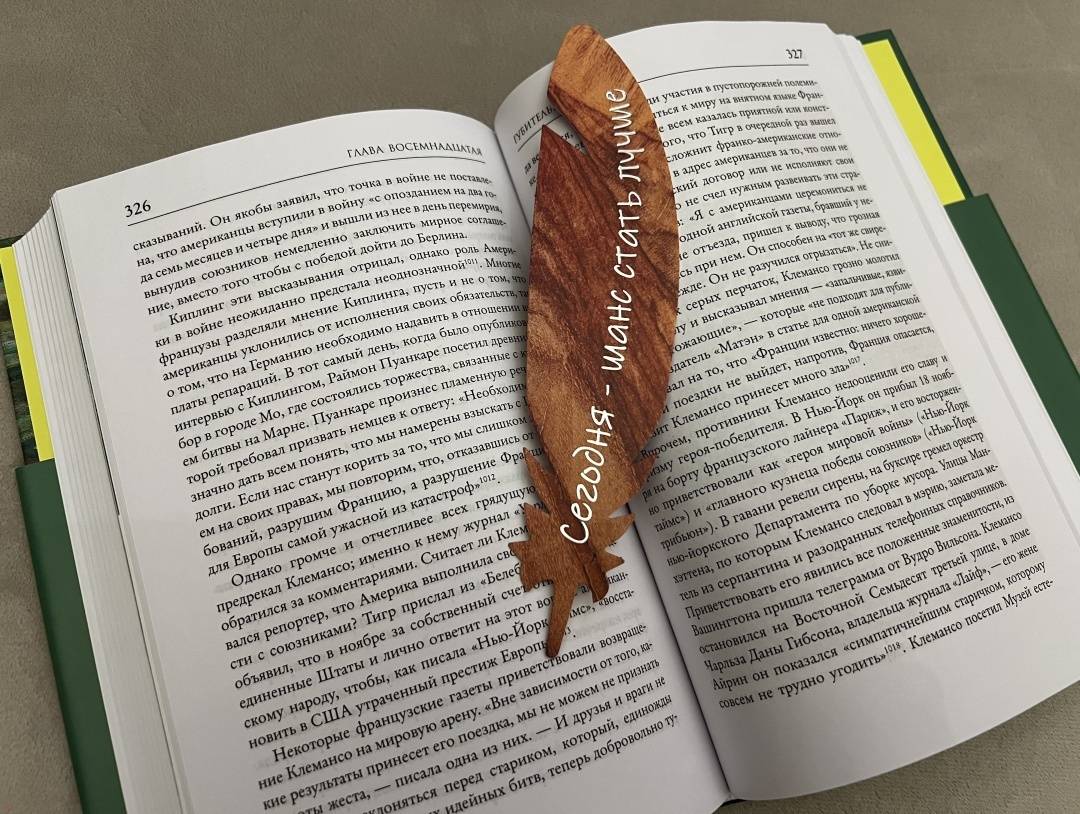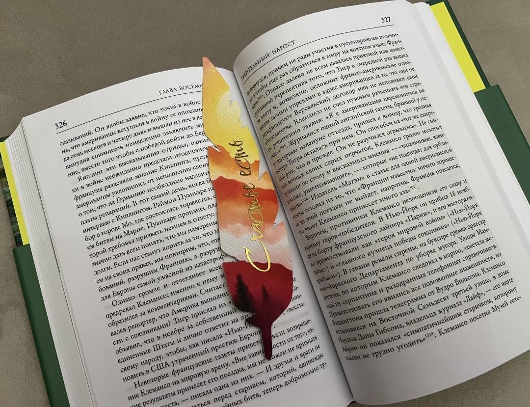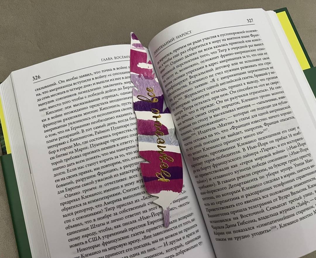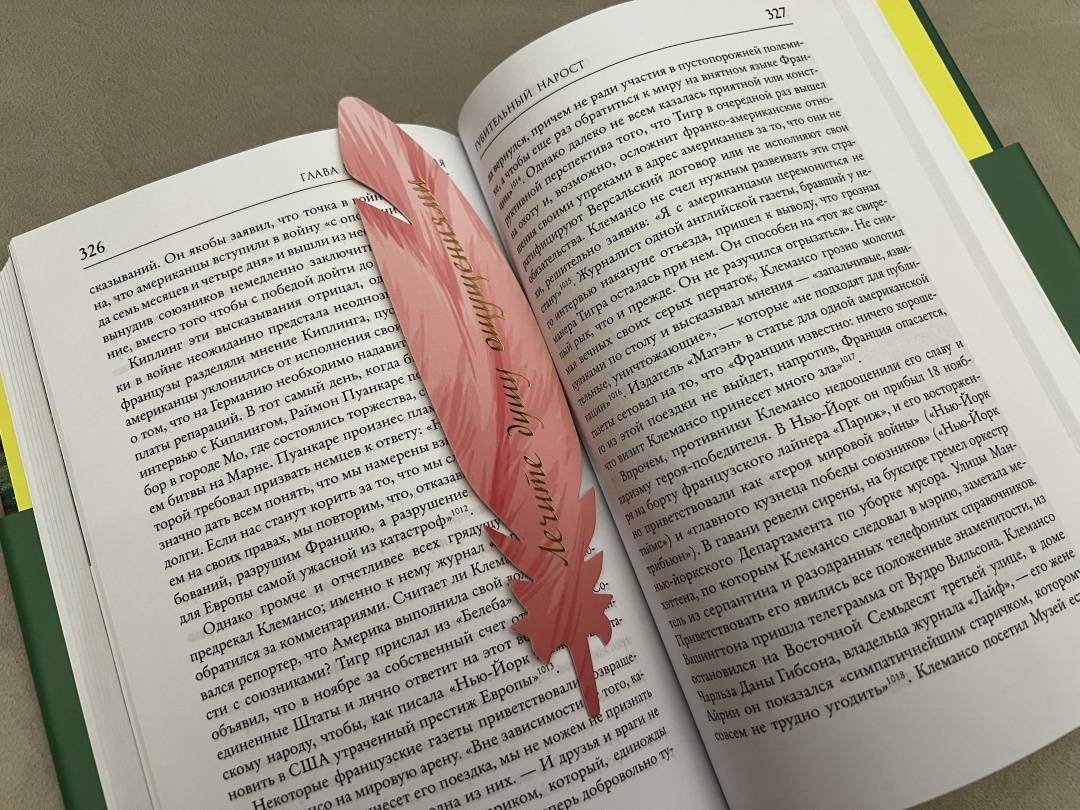 Ну как-то так себе… три закладки нормальные (розовая и полосатики оранжевая и сиреневая), другие три не знаю - отдать кому или выкинуть. Мрачные, в книге тоскливо, некрасиво смотрятся. Особенно чернильная и деревянная (перо хотя бы с изнанки норм). Так себе «мотиваторы». Яркие краски в типографии закончились что ли?