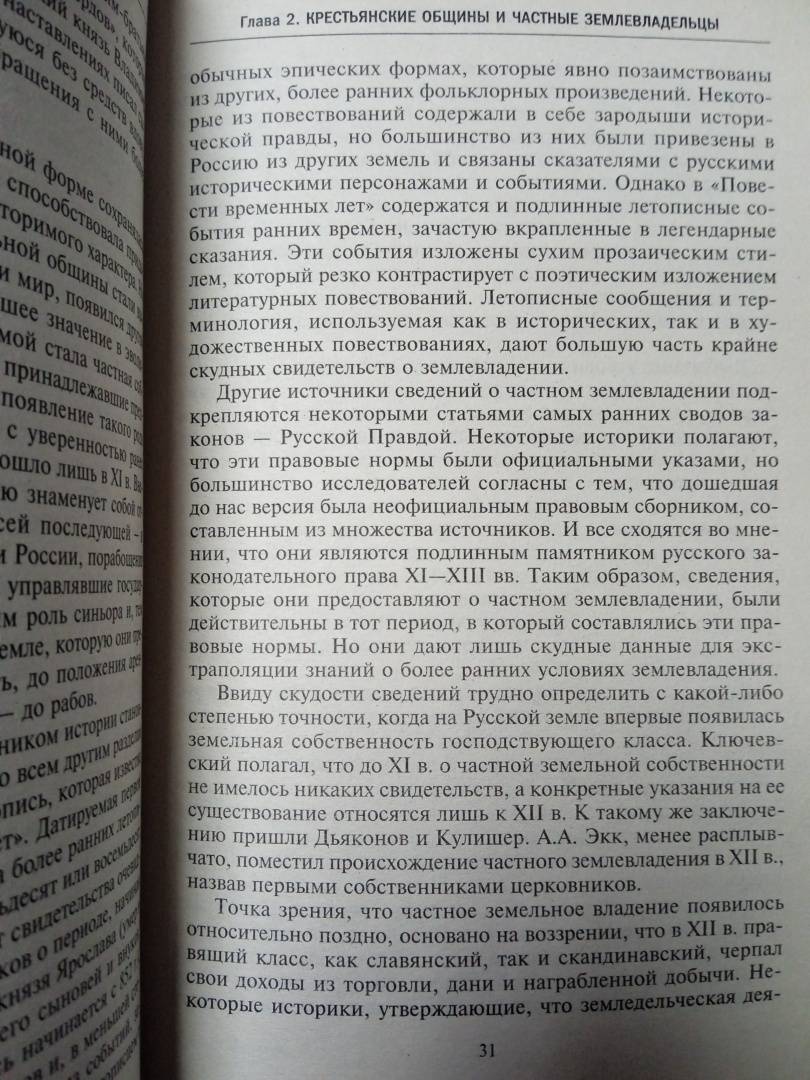 Джером Блум, профессор Принстонского университета, прослеживает историю взаимоотношений русских землевладельцев и крестьянской общины с времен варяжского вторжения до отмены крепостного права. В своем монументальном и вместе с тем новаторском труде Блум описывает типы земледелия и особенности ведени