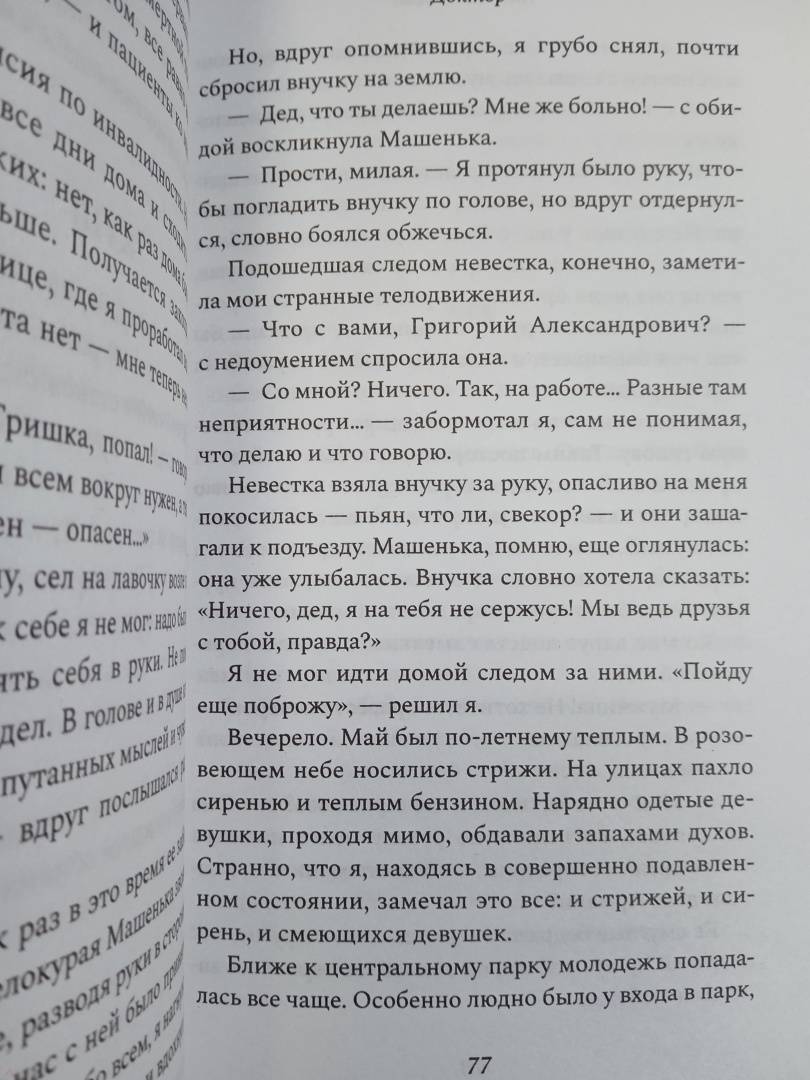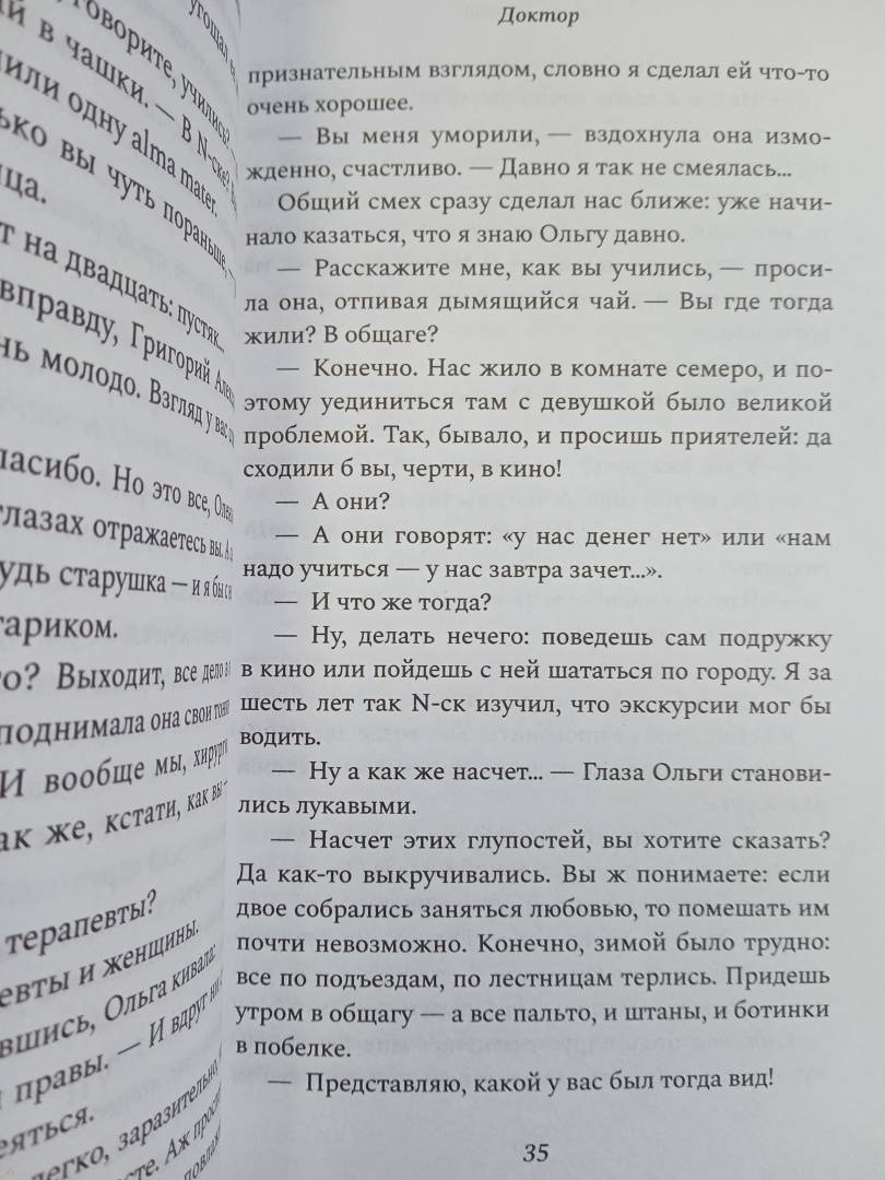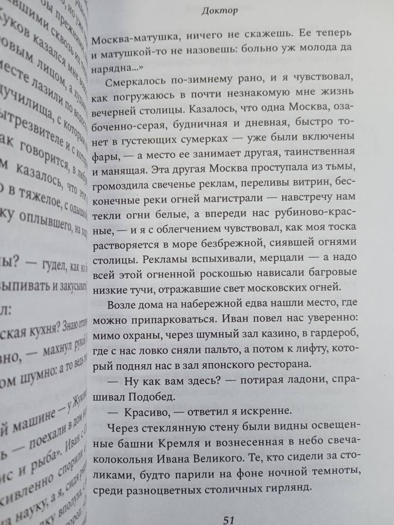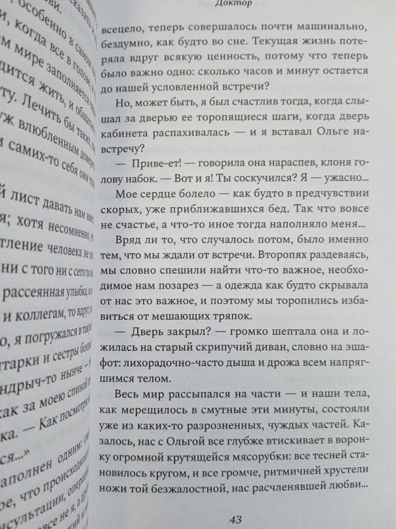 "Ведь нам, людям, нужно не просто прожить свою жизнь от рожденья до смерти, нам еще необходимо и осмыслить ее - осознать, что пройденный нами путь был не случаен и не напрасен", - пишет в дневнике герой романа "Доктор".