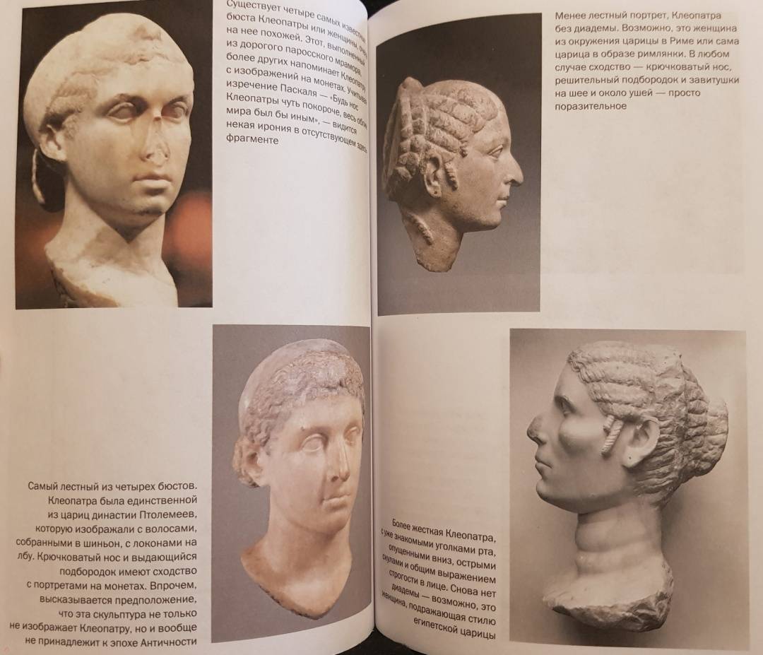 "Смело, грубо, зримо она явилась в мировой политике и повлияла на ход истории. Она убедила народ Египта, что сумерки - это рассвет, и всеми силами этот рассвет приближала. В отчаянной ситуации неистово импровизировала, потом снова импровизировала - кое-кто так определяет гения. Блеск и величие были в ее истории задолго до того, как к ней прикоснулись Октавиан и Шекспир… С первого и до последнего появления нас поражает ее умение продумывать сцену и расставлять декорации. До самого конца она оставалась режиссером своей жизни" (Стейси Шифф).