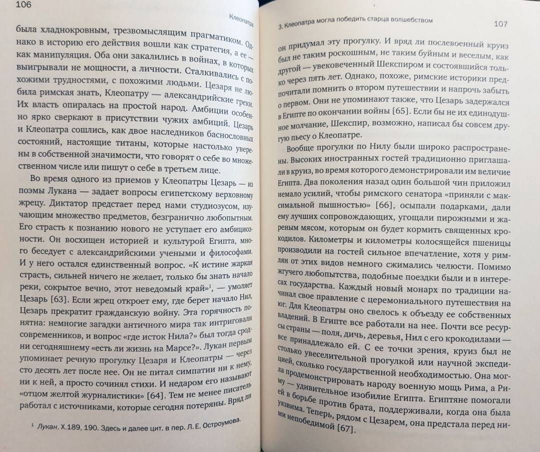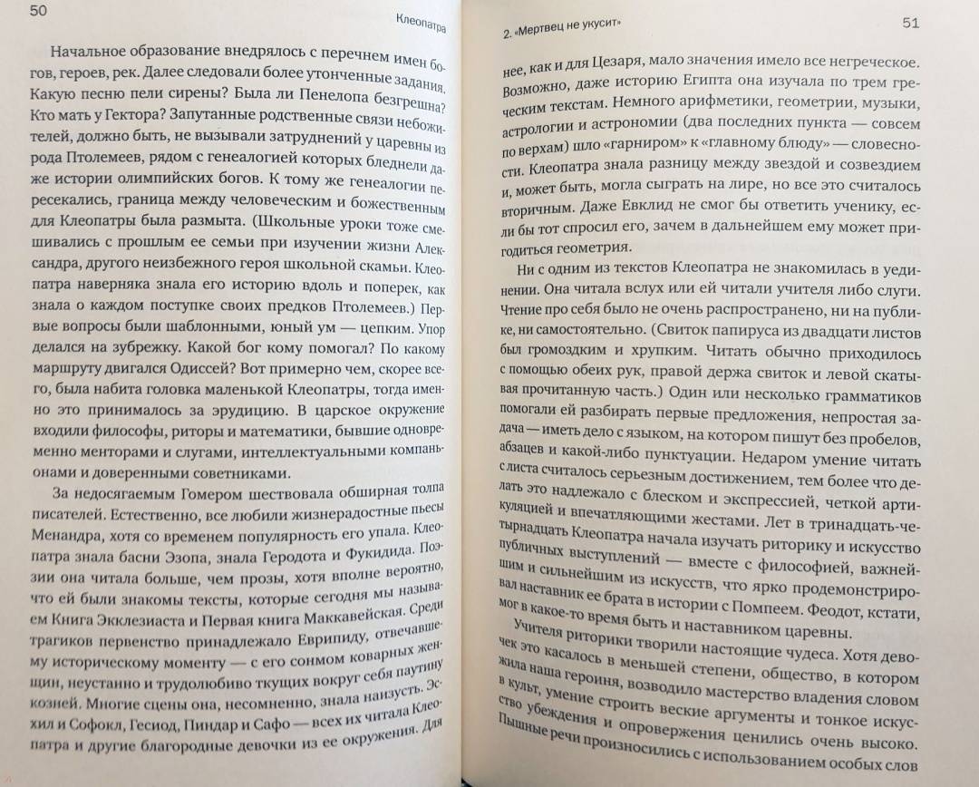 Очень хорошо написанная и переведенная книга про последнюю царицу Египта. Автор хорошо понимает, что образ Клеопатры у не-специалистов складывается в основном на основе художественных и кино-произведений, поэтому она постоянно полемизирует с популярными мифами. Скажем, легендарная красота Клеопатры оказывается чистым ...