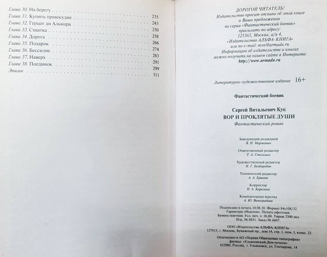 Книга С. Куц " Вор и проклятые души", как и первые две : " Вор и убийца" и " Вор и тьма" поражают непредсказуемыми поворотами магического сюжета. Совершенно невозможно предугадать, каковы будут следующие события. Читать очень интересно, на " одном дыхании". Смертельная опасно...