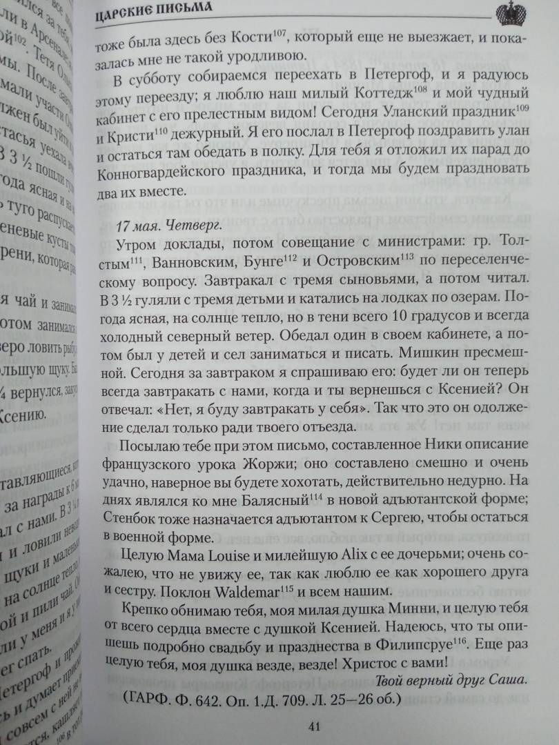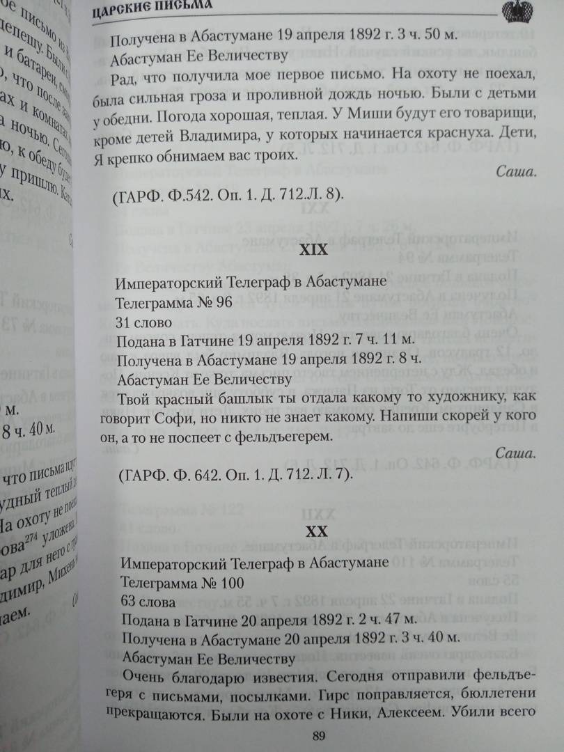 В книге помещены письма двух последних императоров: Александра III и Николая II, а также императриц - Марии Федоровны и Александры Федоровны.