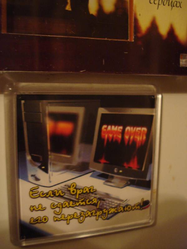 Суперский, прикольный магнитик!!! пока повесила на холодильник но хочу прилепить на монитор(ток куплю 2х сторонний скотч)будя актуально и в тему!!! Картинка очень яркая и не размытая, текст читабельный не теряется на фоне, сзади большой магнит почти в весь размер сувенира, что весьма удобно он не сползает и не слетает...