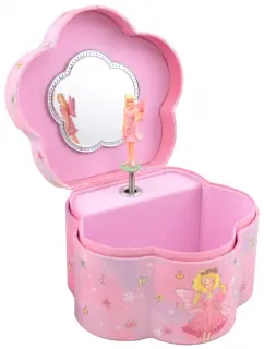 Музыкальная шкатулка для девочек. Внутри шкатулки находится фигурка феи. При заводе шкатулки, фея кружится и звучит приятная мелодия. В детской шкатулке имеется отделение, в котором Ваша малышка может хранить свои драгоценности. Детская музыкальная шкатулка упакована в подарочную коробку.