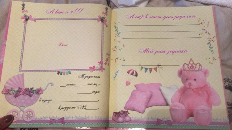 Можно много различных записей на память сделать, мест для фото тоже много. Всё самое важное и ценное в первый год жизни малышки он сохранит! Покупала себе, теперь ещё парочку на подарки возьму!