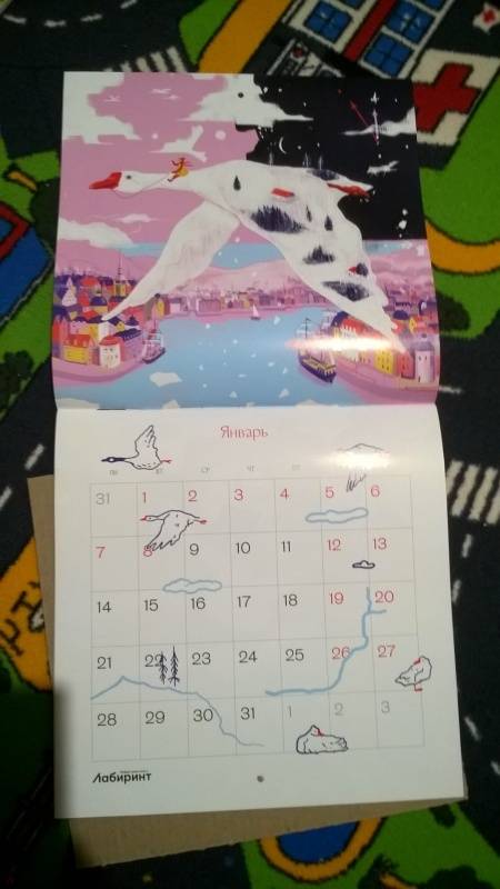 Спасибо за замечательный подарок! Не вешала дома календари, так как в интерьер не вписываются. Но ради такого место нашла!!! Детям очень нравится. Всей семьей угадываем сказку, а потом читаем. Наследующий год ждём подобных подарков!!!