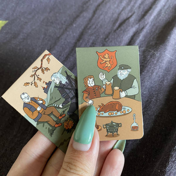 Героями этого сета стали два гиганта современного фэнтези - Джордж Мартин и Анджей Сапковский. Их многое объединяет - например, средневековая эстетика, скрупулезная проработанность мира и специфическое чувство юмора. Пану Анджею есть о чем поговорить с саркастичным и мрачным ведьмаком Геральтом. А Джордж Мартин наслаждается не только роскошным пиром, но и обществом главного стратега вселенной Льда и Огня - Тириона Ланнистера.