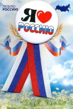 Значок закатной с лентой-триколор "Я люблю Россию"