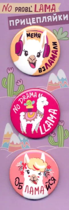 Набор закатных значков (3 штуки) Прицепляйки. No Prob'LAMA