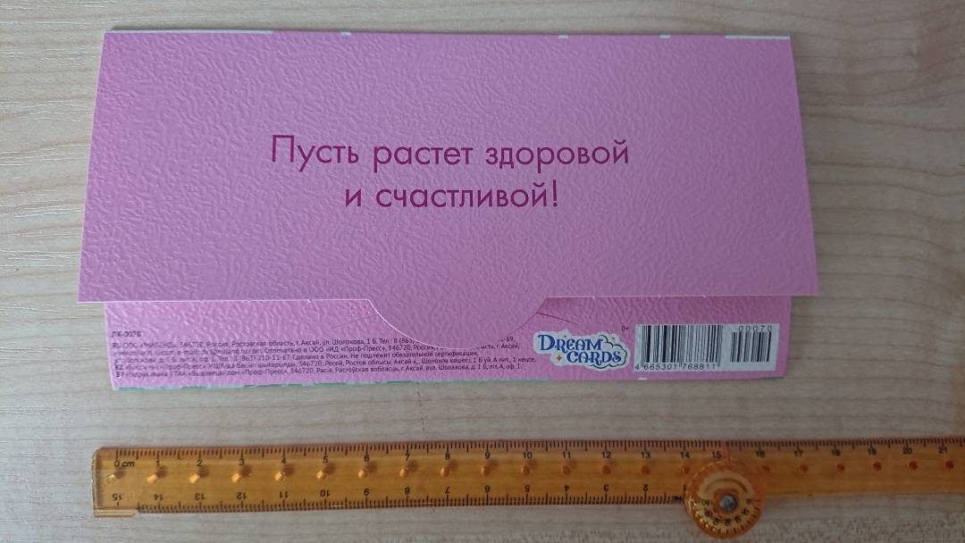 Горизонтальный конверт для денег с пожеланием. Изготовлен из фактурного картона. По размеру в ширину 16,5 см.