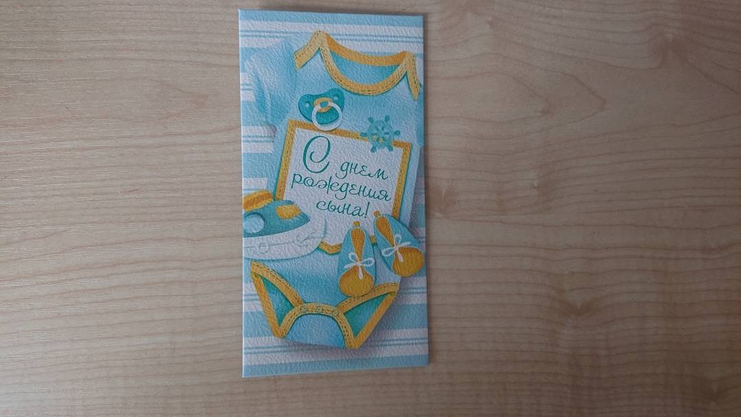 Конверт для денег с пожеланием, вертикальный. Выполнен из фактурного картона. Размер в ширину 16,5 см.
