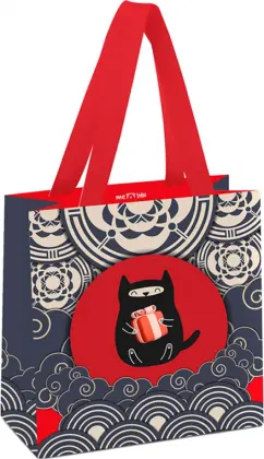 Размер подарочного пакета - 20х20х10 см. Изготовлен из плотного мелованного картона с матовой ламинацией и выборочным лакированием. Пакет Meshu Samurai cat выполнен в стильном дизайне.