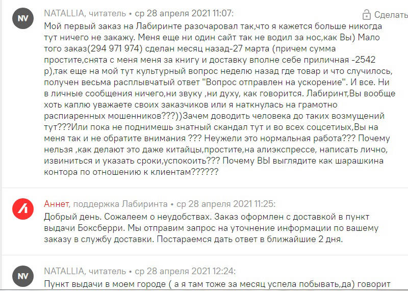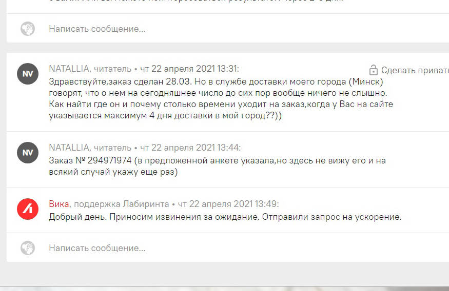 NATALLIA, читатель, на тему «Уточнить данные по доставке»