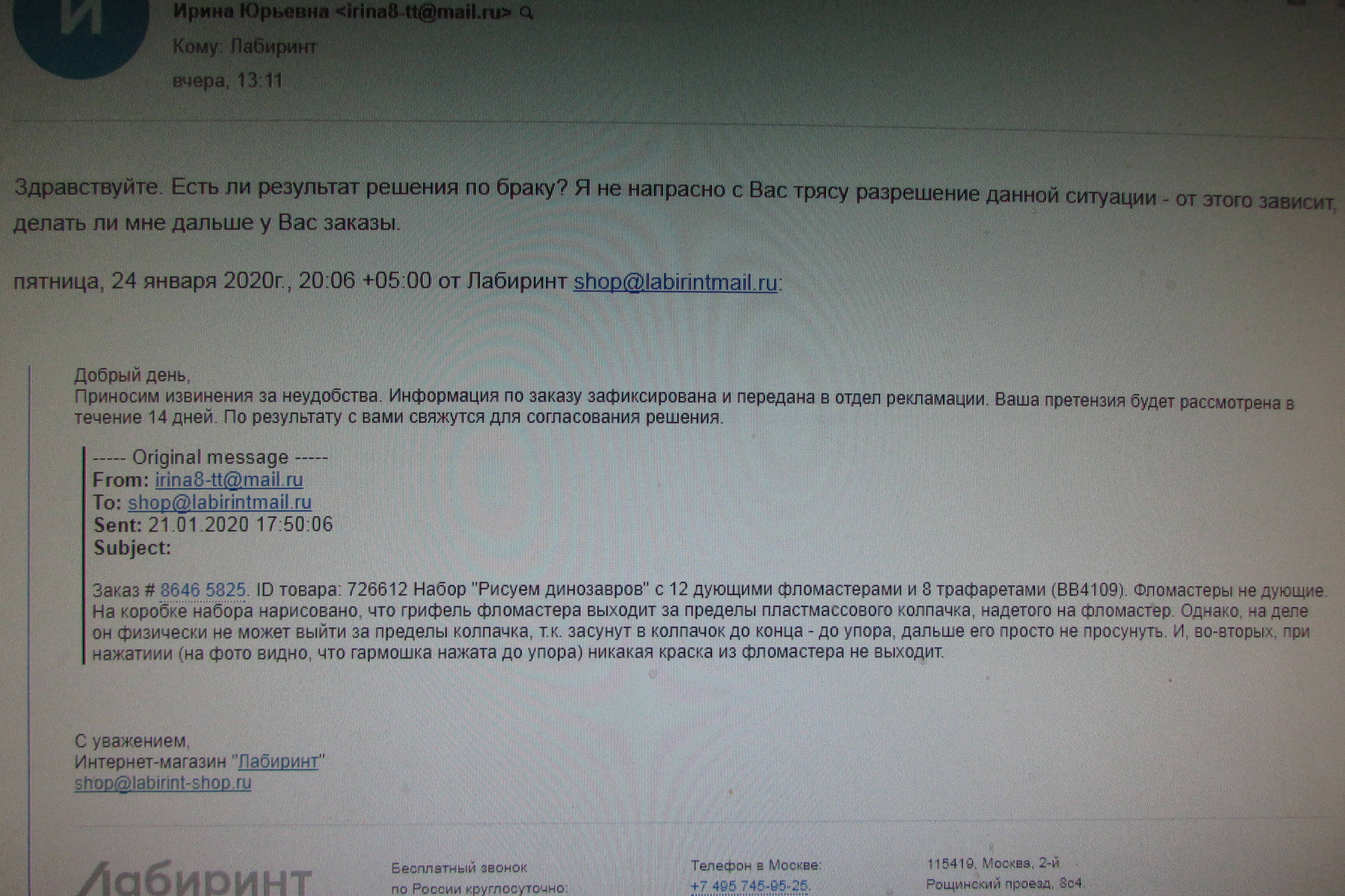Сколько же жалоб и претензий на магазин "Лабиринт" я увидела на просторах интернета! И с ними полностью согласна. У меня сложилось мнение, что набрали некомпетентных людей , не выполняющих своих обещаний. Одно враньё!