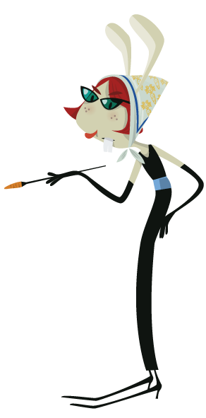 Лола – стройная, немного легкомысленная и очень элегантная. Она совсем не стареет и всегда одета по моде и со вкусом. Носит изящно повязанный платок. Пользуется держалкой для морковки, потому что руками есть неприлично.