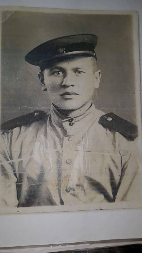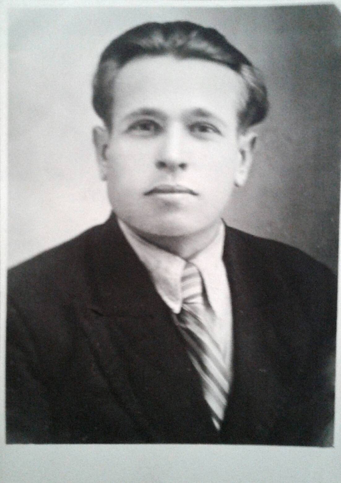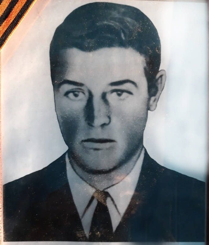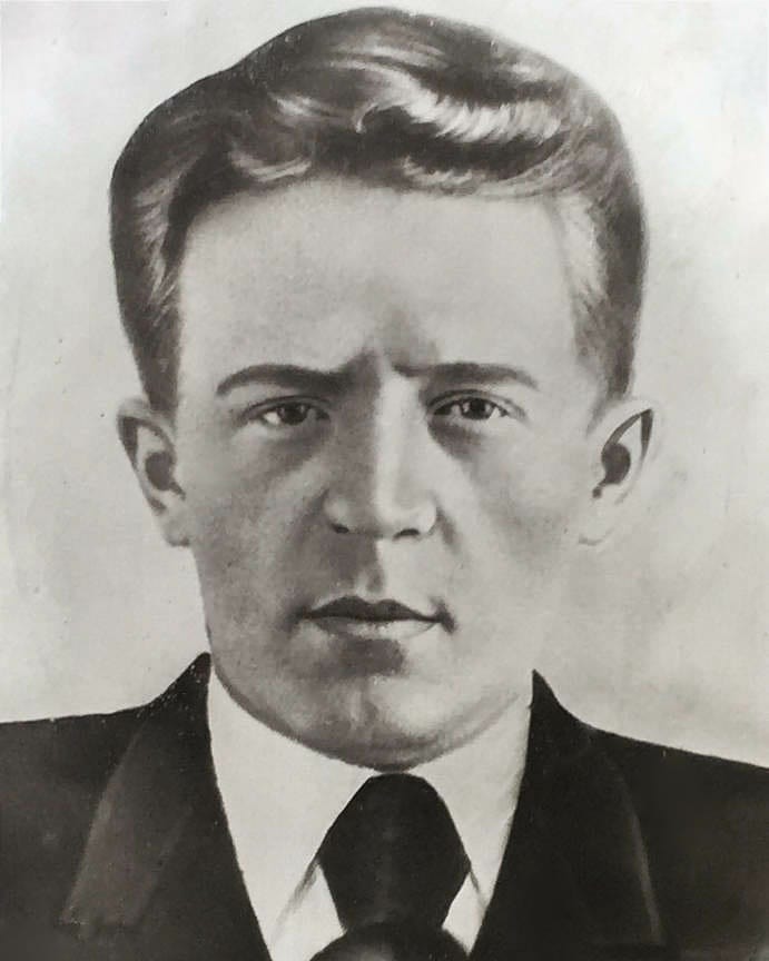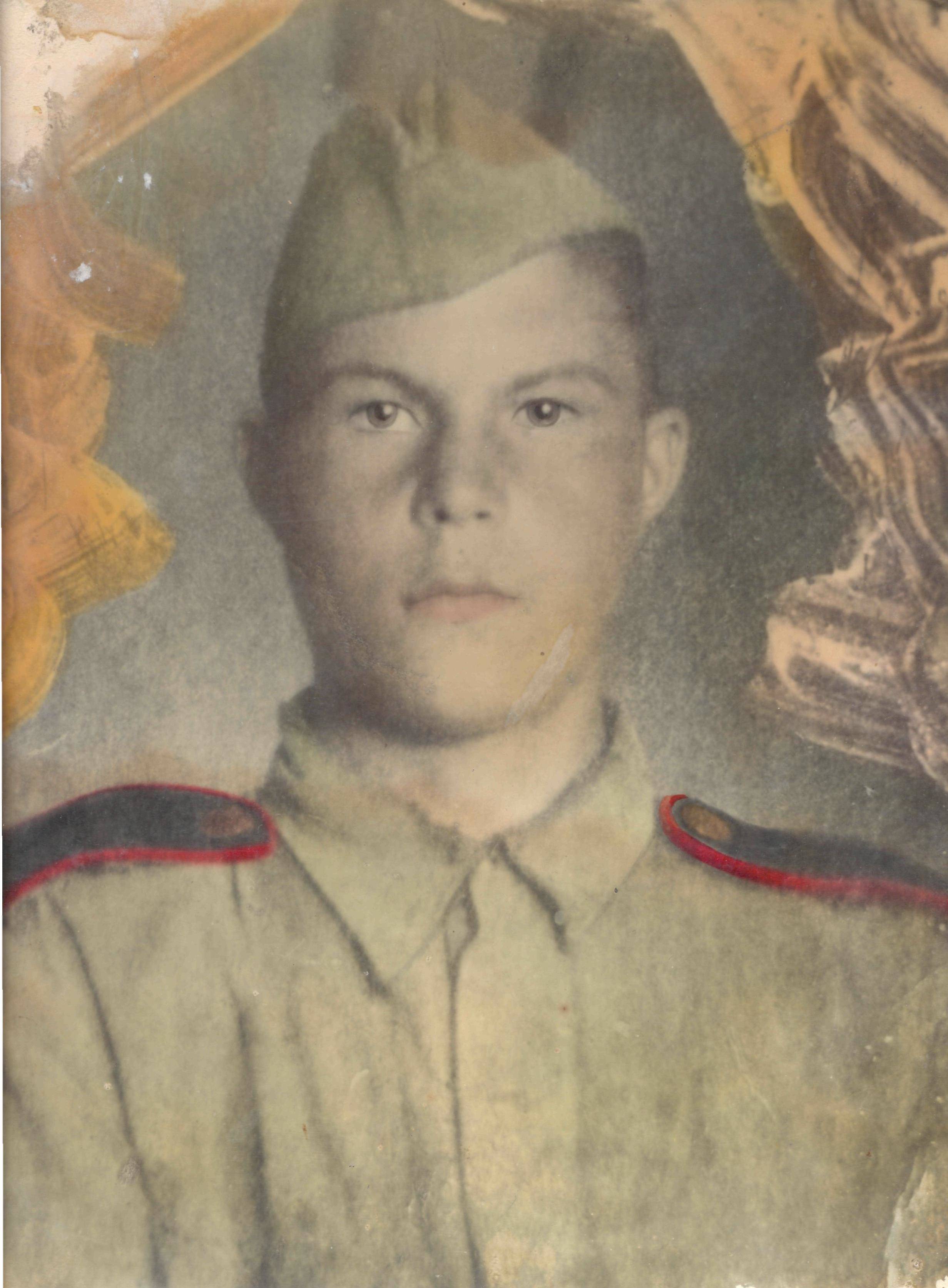 Пропал без вести в 1941. Родился и жил в Кустанайской области в Казахстане. Учился на ускоренных курсах летчиков в Новосибирске летом 1941. Отлично рисовал - это его автопортрет перед отправкой на фронт.