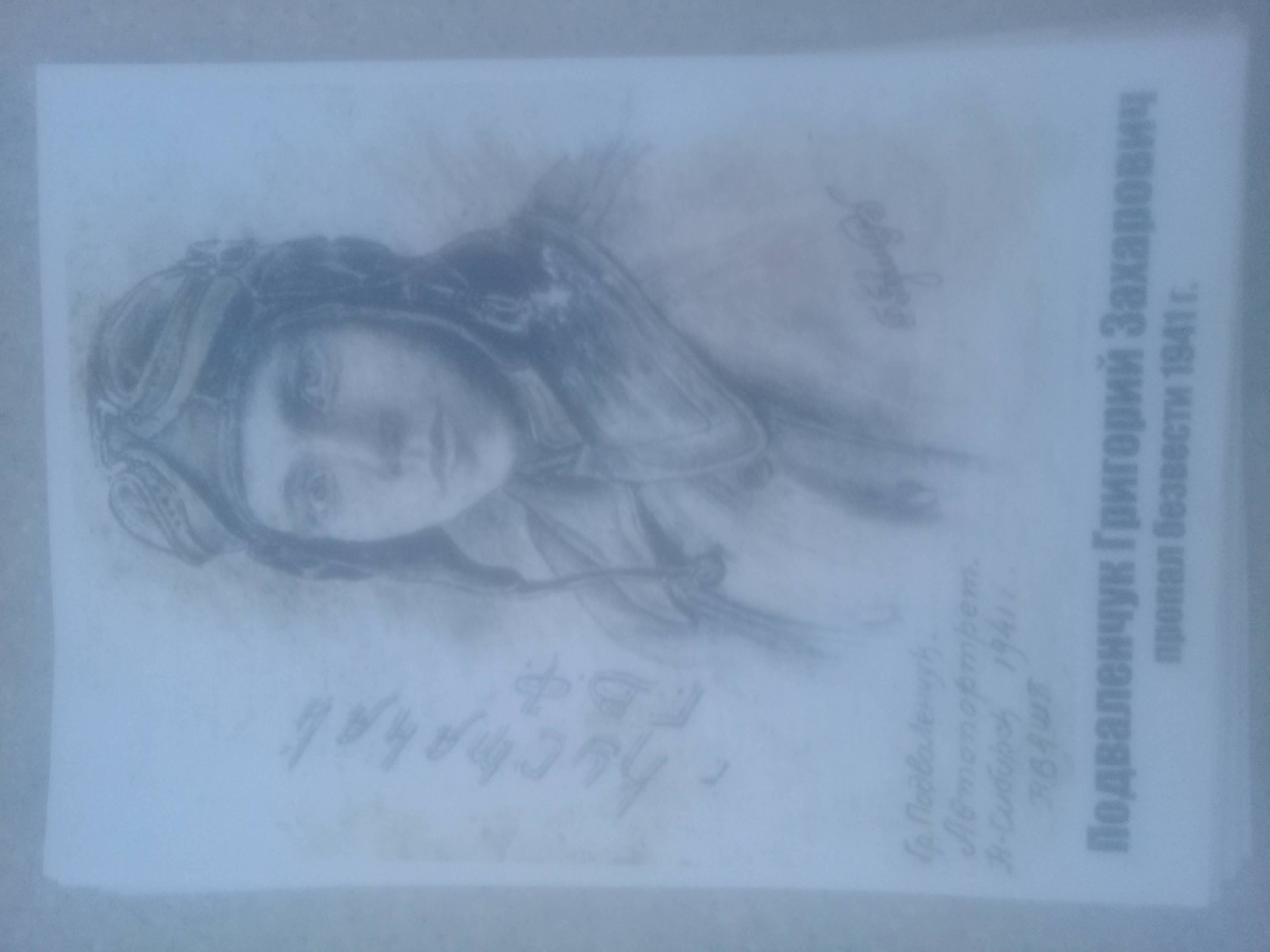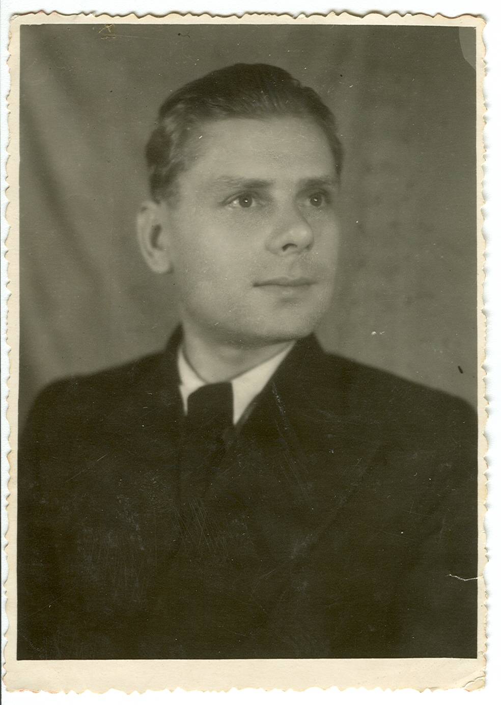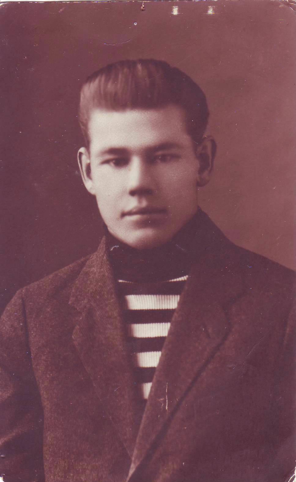 Пропал без вести в 1941. Родился и жил в Кустанайской области в Казахстане. Учился на ускоренных курсах летчиков в Новосибирске летом 1941. Отлично рисовал - это его автопортрет перед отправкой на фронт.