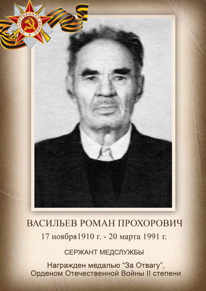 17.01.1909 — 06.07.1944 Младший лейтенант, командир огневого взвода батарей 45мм пушек 641 стр. полка. Награжден орденом "Красной звезды"